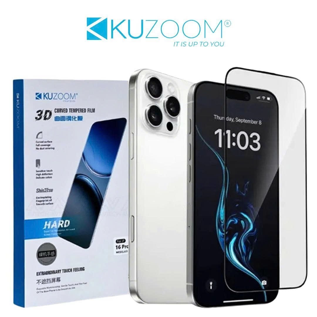 Kính Cường Lực Kuzoom 3D Curved Trong Suốt | Chống Nhìn Trộm | Không Lẹm Viền | Dành Cho iP 17 | 16 | 15 Series | Chính Hãng Cao Cấp