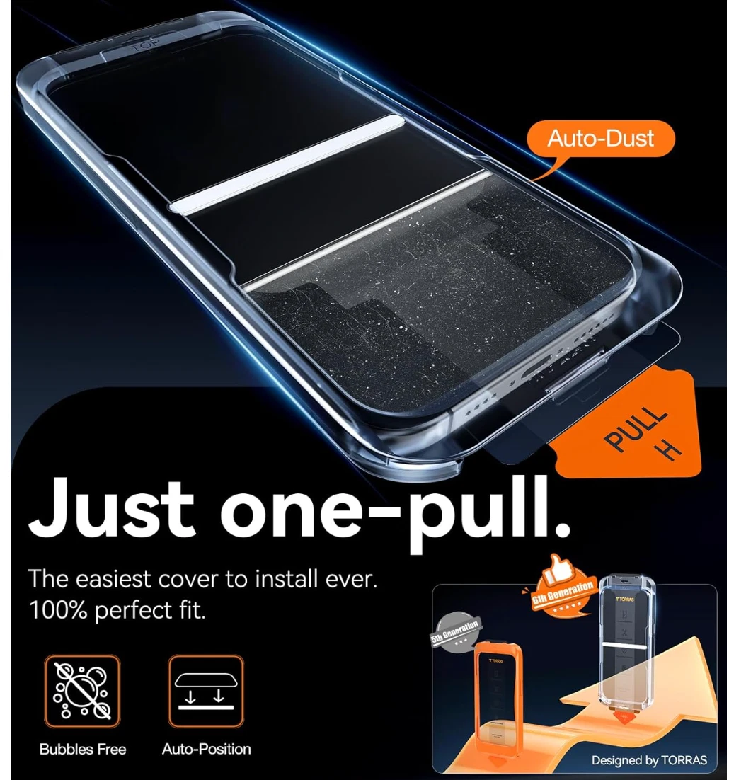 Cường Lực TORRAS Trong Suốt/ Chống Nhìn Trộm Combo 2 Kính /Hộp Có Khung Trợ Dán Cao Cấp Chính Hãng cho iP 16 Pro Max/ 16 Pro