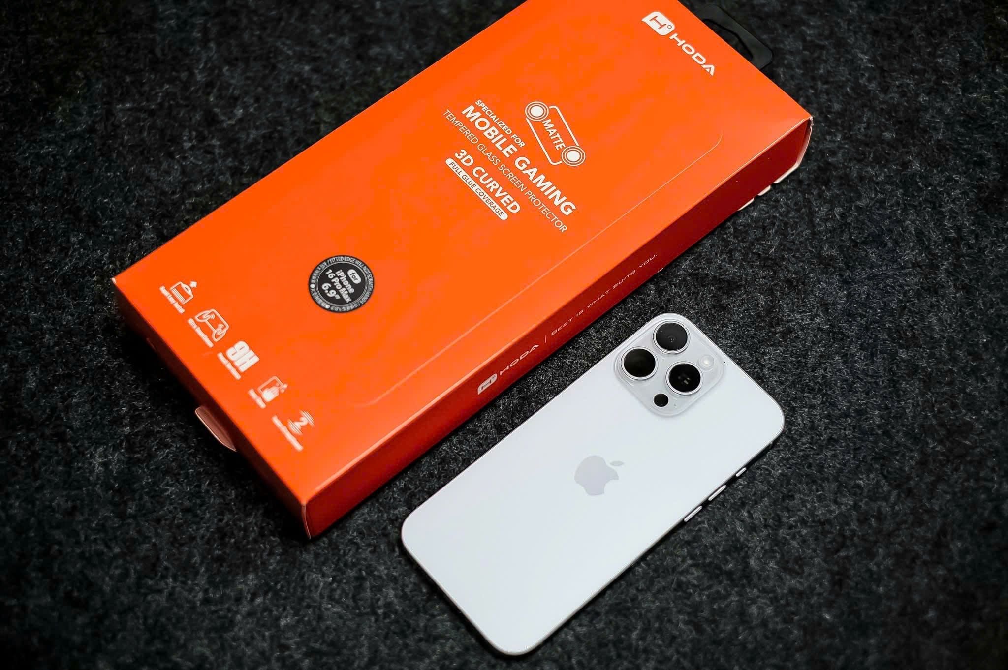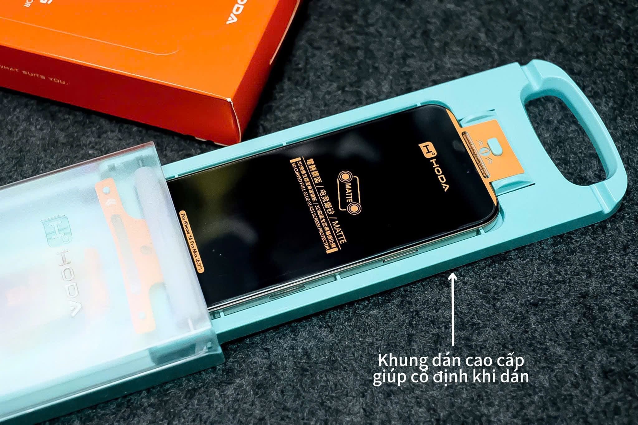 Cường Lực Hoda 3D Nhám Chống Vân Tay Không Lẹm Viền Có Khung Trợ Dán Chính Hãng cho iPhone 16 Pro| 16 Pro Max