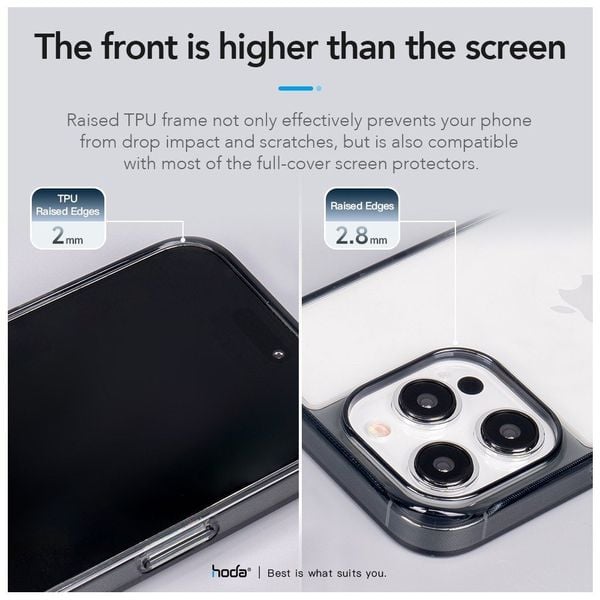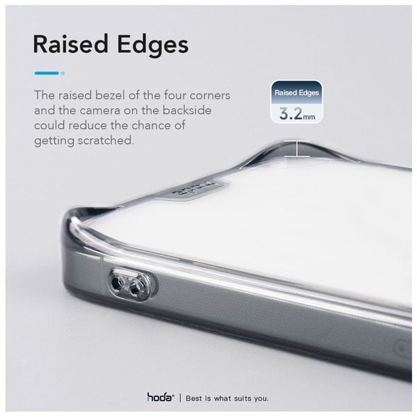 Để có thể hạn chế tình trạng trầy xước trong quá trình sử dụng, hãng đã thiết kế khung ốp ở các cạnh, 4 góc và camera nâng cao hơn. Một thiết kế tinh tế đã tạo nên sự khác biệt so với những chiếc ốp khác có mặt trên thị trường hiện nay. Hơn nữa, ốp Hoda Crystal Pro cho iPhone này có thiết kế các dấu chấm xung quanh các góc để hạn chế lực tác động, giúp chiếc iPhone của bạn được bảo vệ một cách an toàn hơn.