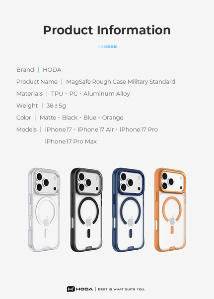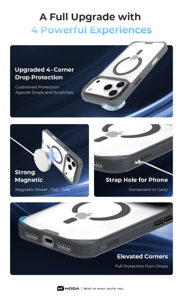 Ốp Lưng Hoda Rough Magasafe Chống Sốc Đạt Chuẩn Nhám Chống Bám Vân Tay Tích Hợp Sạc Không Dây Chính Hãng cho iPhone 16 Pro| 16 Pro Max| iPhone 17 Pro| iPhone 17 Pro Max