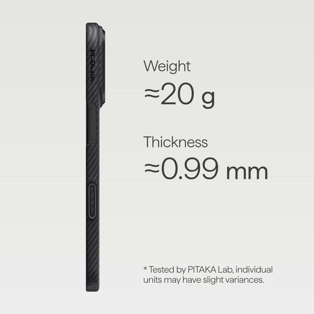 Ốp lưng PITAKA MagEZ Case 6 chính hãng cho iPhone 16 Pro| iPhone 16 Pro Max| iPhone 17 Pro và iPhone 17 Pro Max là một lựa chọn hoàn hảo cho những ai yêu thích sự kết hợp giữa tính năng bảo vệ và thiết kế tinh tế. Được chế tác từ chất liệu Aramid fiber cao cấp, ốp lưng này không chỉ nhẹ và mỏng, mà còn cực kỳ bền bỉ, giúp bảo vệ điện thoại khỏi va đập và trầy xước. Thiết kế chỉ dày khoảng 0.85mm giữ cho chiếc iPhone của bạn luôn gọn gàng, dễ dàng cầm nắm. Bên cạnh đó, ốp lưng cũng hoàn toàn tương thích với tính năng MagSafe, cho phép bạn sạc không dây và sử dụng các phụ kiện một cách thuận tiện. Với PITAKA MagEZ Case 6, bạn không chỉ bảo vệ điện thoại mà còn nâng tầm phong cách cá nhân.
