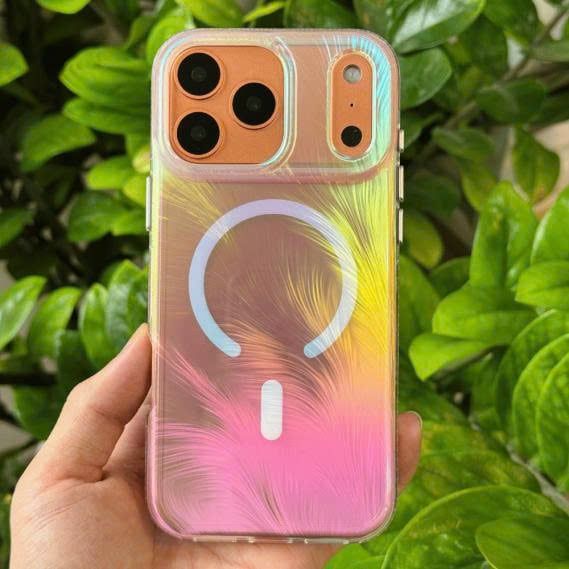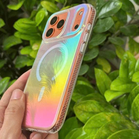 🌈 Mặt lưng: Chất liệu giả kính cầu vồng 7 màu, tự đổi màu theo ánh sáng ✨🔮