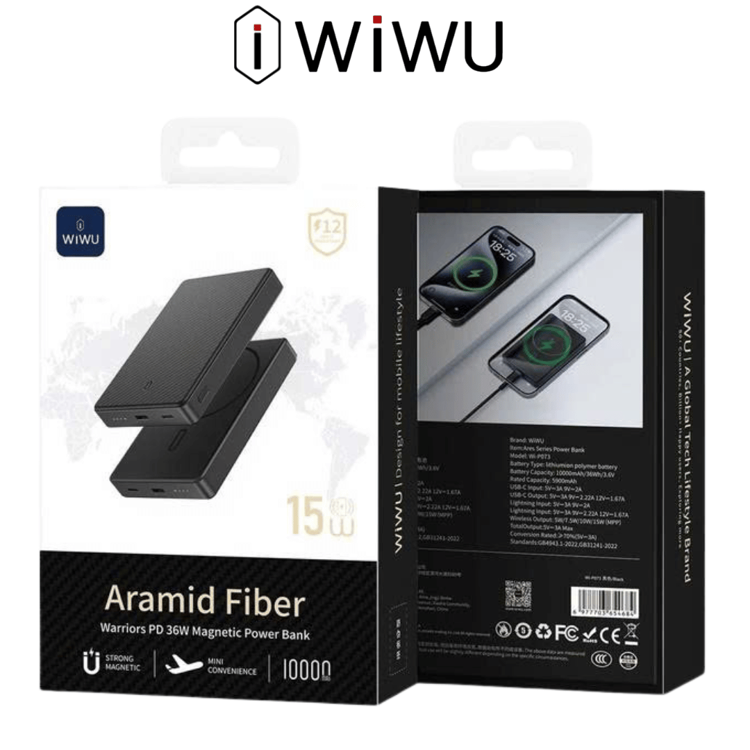 Pin Dự Phòng WiWU Aramid Fiber Wi-P073 20W 10.000mAh Siêu Mỏng chỉ 9mm Chính Hãng cho iPhone