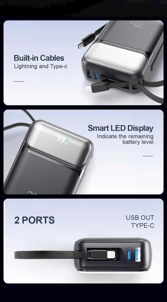 • Hai cáp tích hợp (L + Type-C) – tiện lợi khi di chuyển
